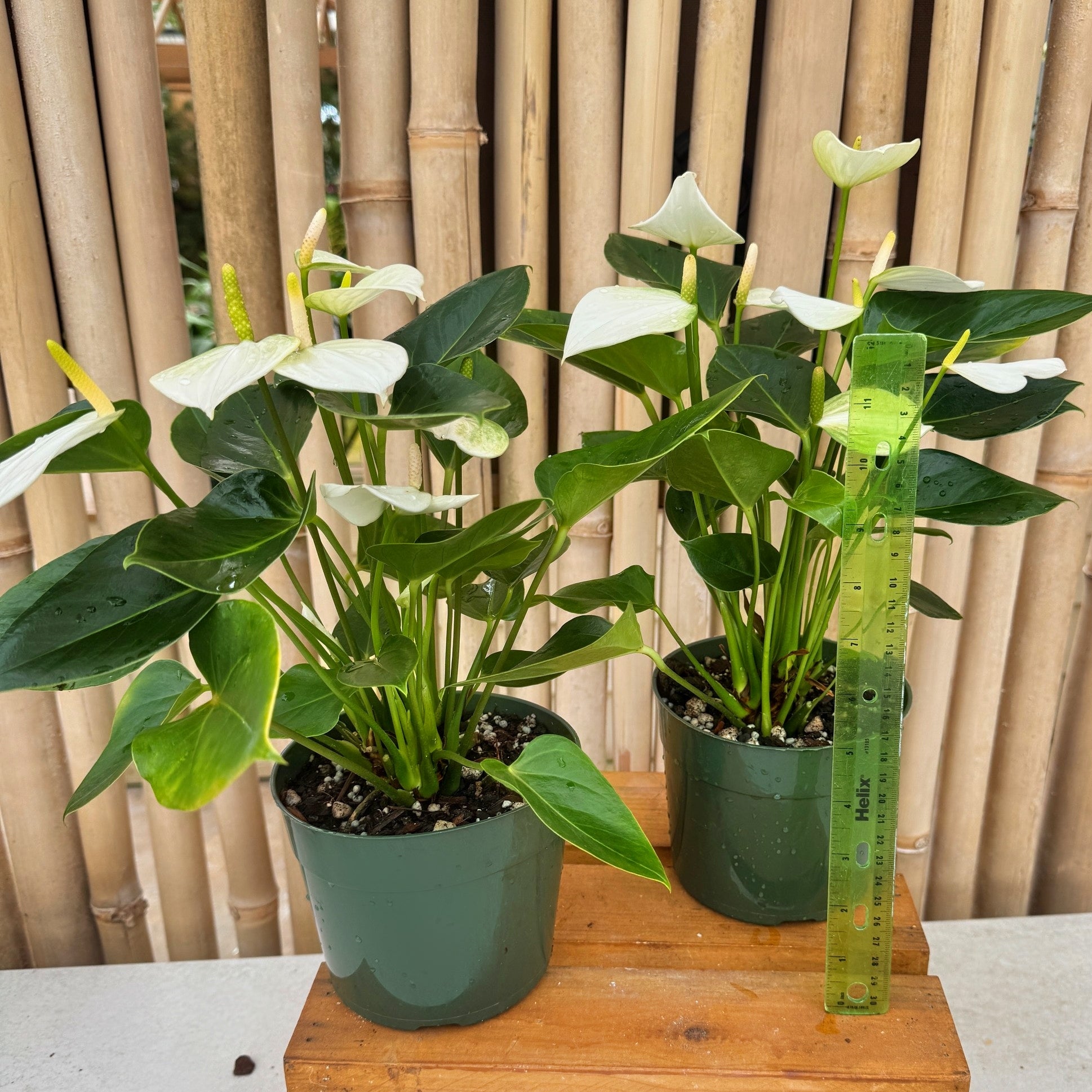 This specialty Anthurium is a prolific bloomer, producing elegant flowers continuously throughout the year. A mature plant with full foliage in a 5.5" pot, each one is filled with beautiful, rounded white blooms that create a clean, striking display. These plants are not only eye-catching but also easy to care for, making them a perfect addition to any indoor space or shaded lanai.