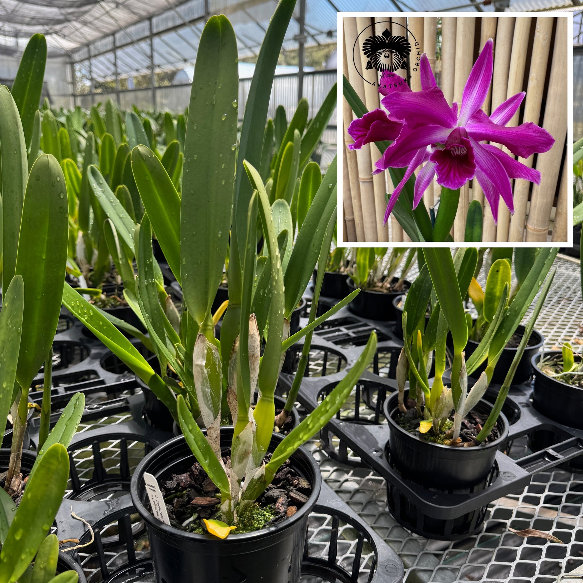 This Cattleya is a seedling orchid coming from two beloved varieties of species Cattleya purpurata 'Raspberry' and 'Double Flame'. This particular batch are sibling hybrids. Unique flower blends tend to produce more elongated petals & sepals.