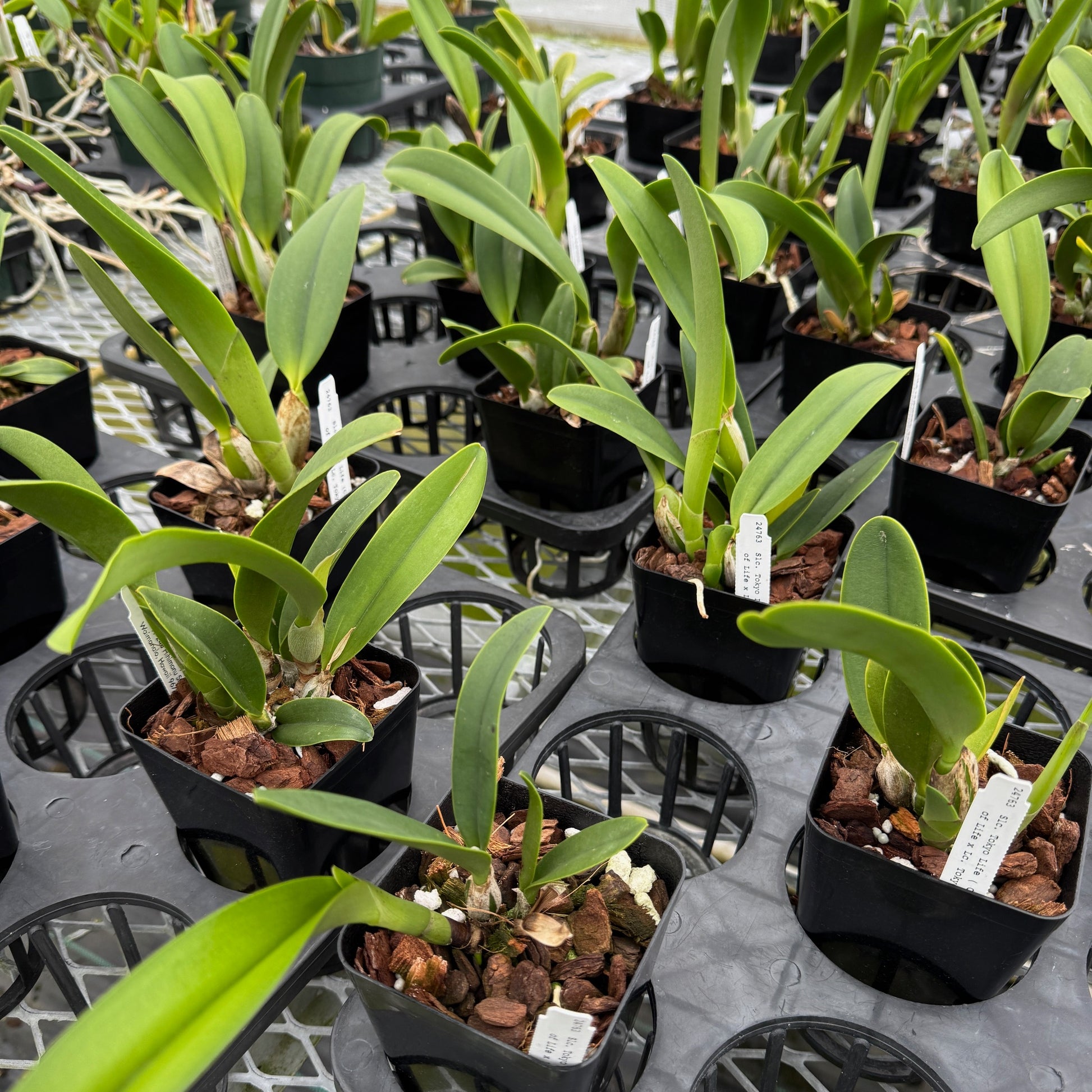 This seedling Cattleya hybrid is known to produce a wonderful array of blooms with bright hues. As this is a seedling, not a clone color/patterns may vary slight between each plant. Every plant reveals its breathtaking blooms in a striking display of color and refined form. A masterpiece in miniature, ready to brighten any collection.