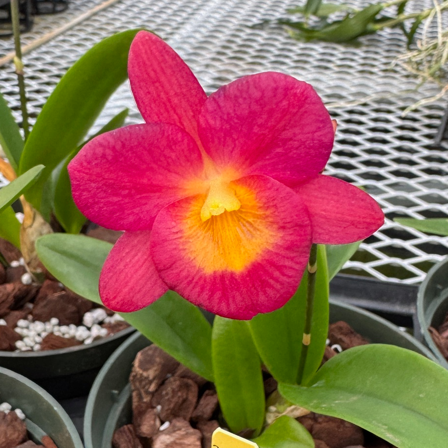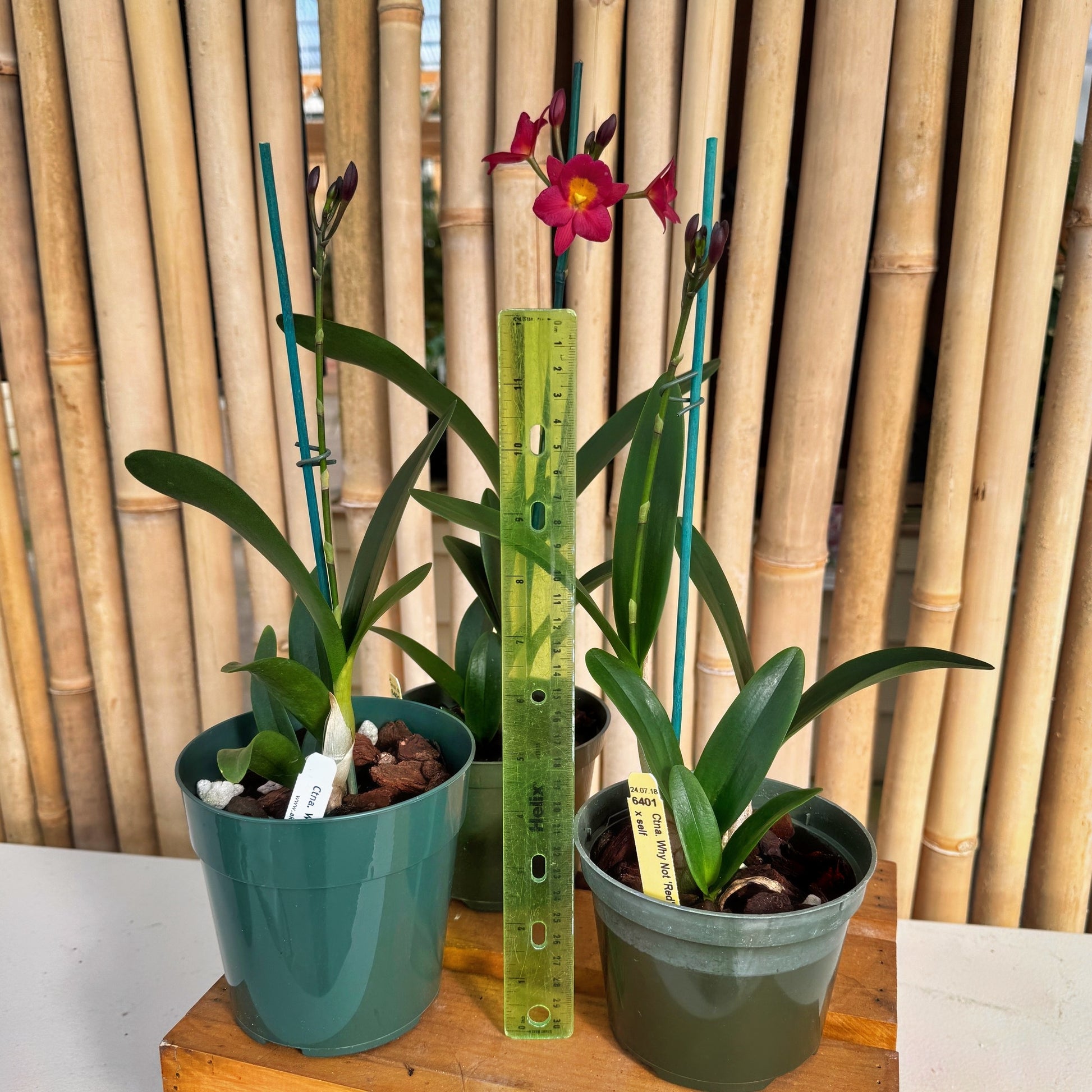 Guaritonia (Grt.) previously Ctna. Why Not is a primary orchid hybrid cross of the species Gur. aurantiaca x Bro. sanguinea. An easy-to-grow miniature classic that has been considered one of the best hybrids created from Broughonia sanguinea as they are eager growers and bloomers from an early age. Blooms small, red flowers with a yellow throat and column and will continue to produce more flowers as these orchids continue to mature. Often producing up to a dozen or more per spike lasting months.