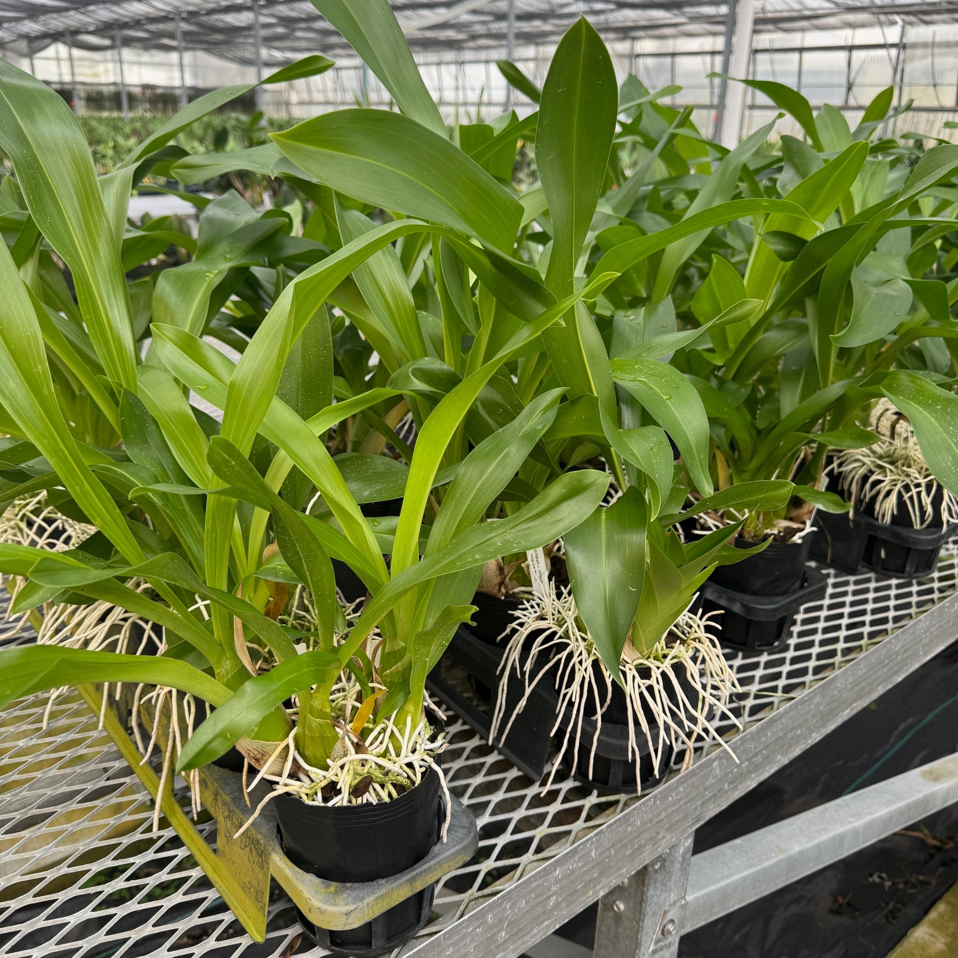 Grammatophyllums like bright light and lots of water in the growing season. Please note that these plants were created from seed therefore, they are not clones. The two photos represent the combinations of colors that you could possibly get. With seedlings, no flower color or plant is the same. Plants can range from having solid green flower to a more spotted leopard pattern. For more information on Grammatophyllum care please visit the American Orchid Society website: https://www.aos.org/orchids/orchids-a-to-z/letter-g/grammatophyllum.aspx