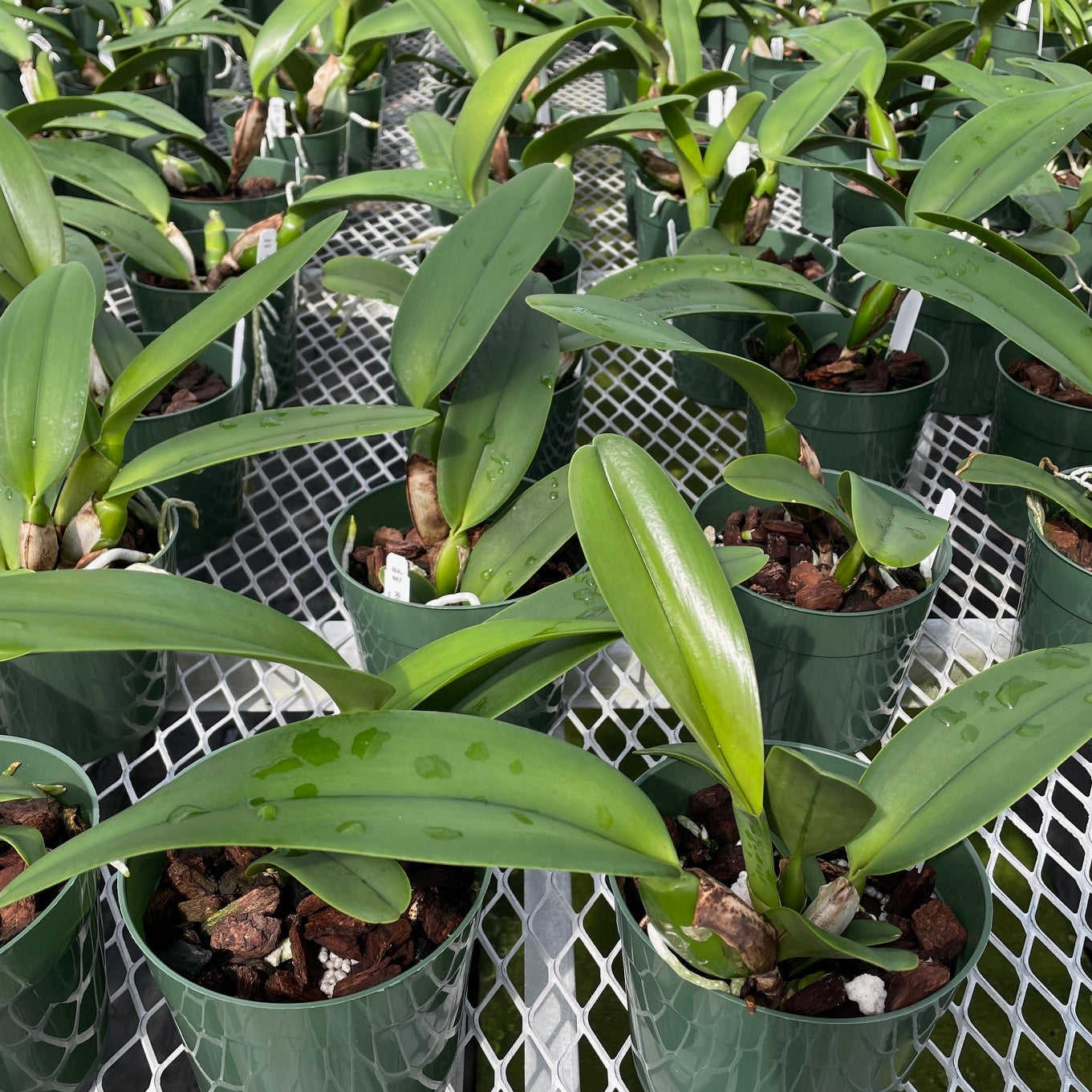 Rlc. Joy Sokabe 'Shining' is at a mature blooming stage. The parental cross for this clone is Rlc. Fusako Yamaoka x C. Irene Finney.Plant Stage: Mature but NOT Currently producing buds/blooms
