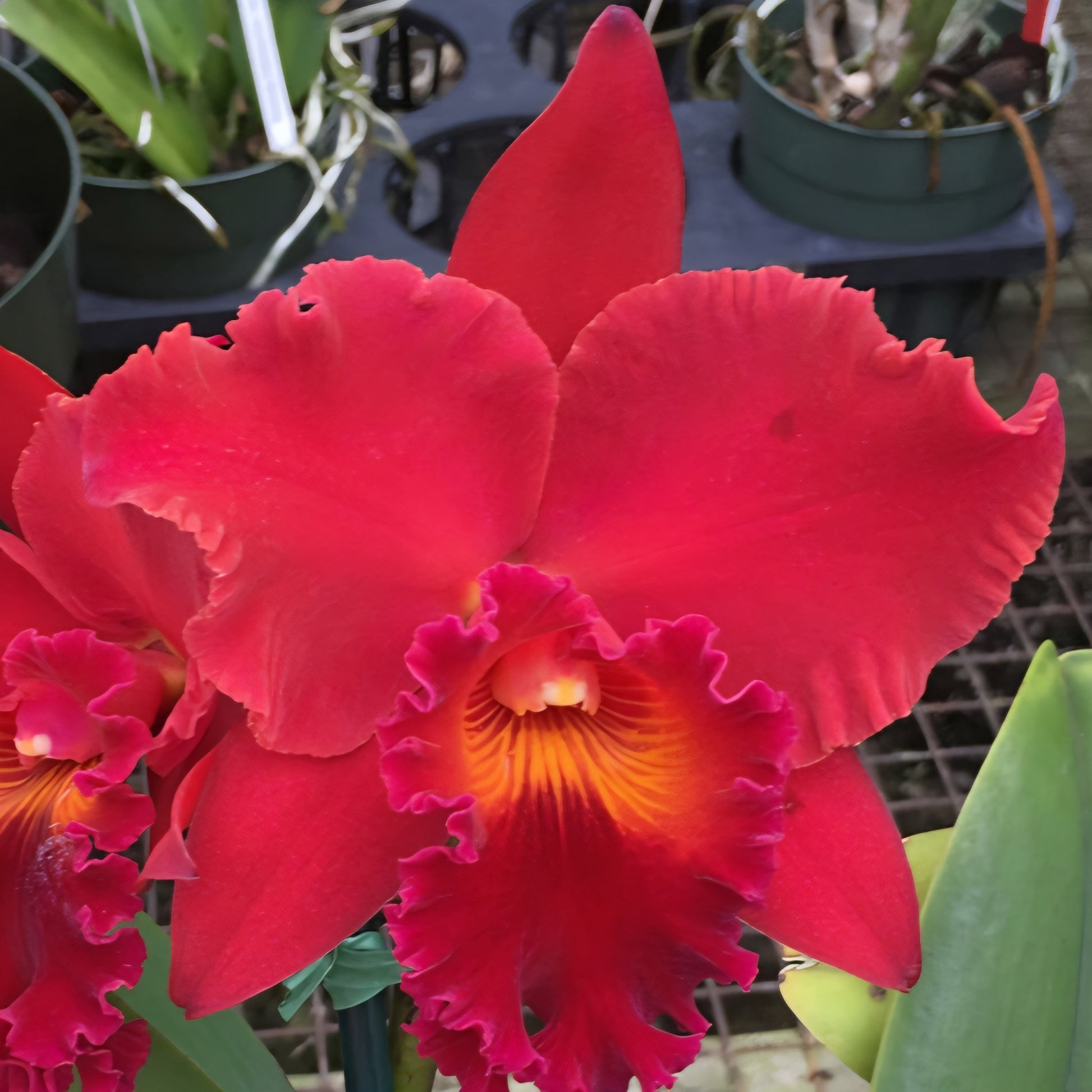Sultry and bold, this red cattleya Rhyncholaeliocattleya (Rlc.) Kristy Manmoto 'Volcano Red' flaunts ravishing red blossoms with a warm golden glow that radiates from its fiery lip. These healthy, mature orchids are genetically primed to stun with flair and fragrance to match their brilliance. The countdown has begun—like molten lava, this cattleya is preparing to set a blaze next blooming season!