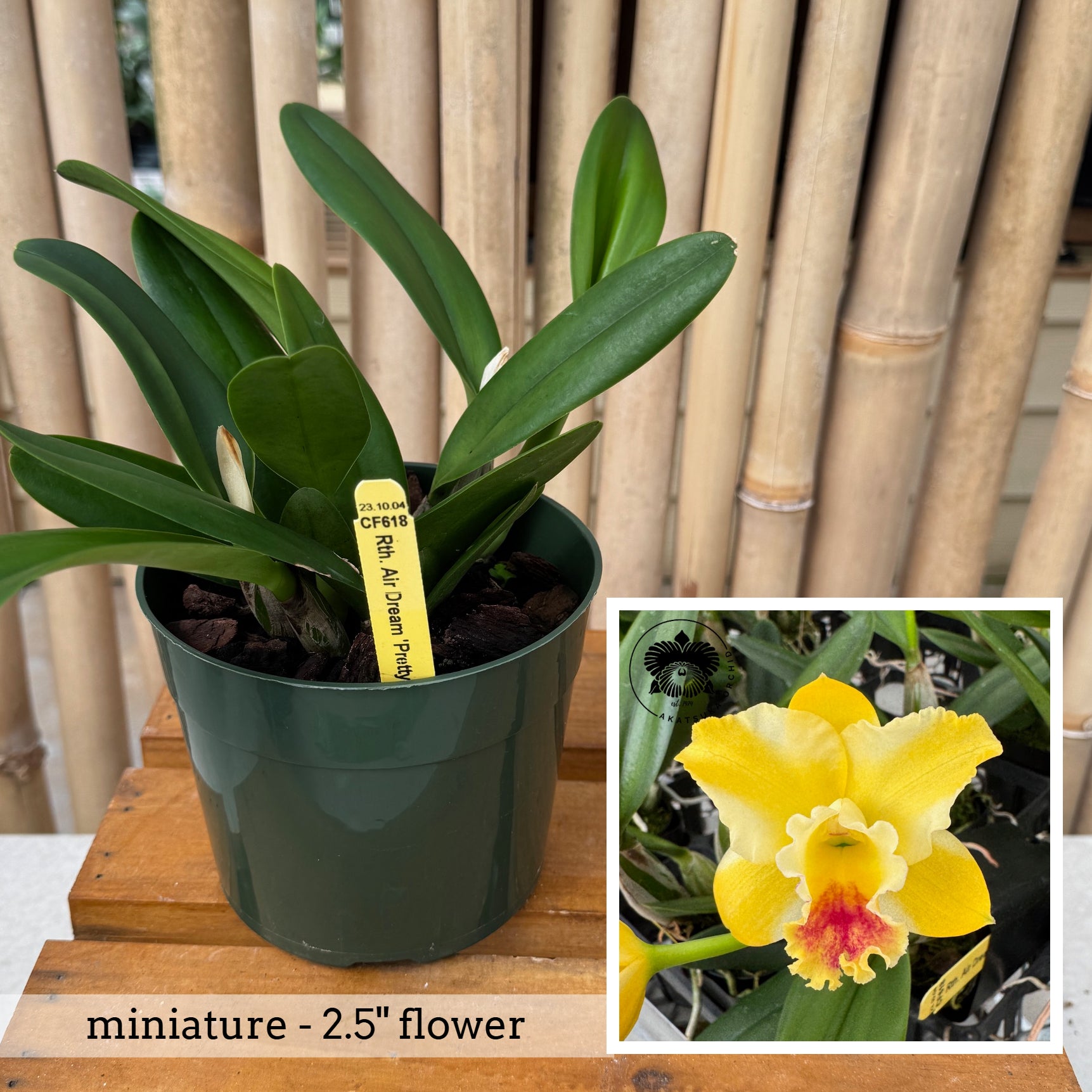 Vivid pink lips and bold yellow tips make this cream-colored Cattleya hybrid a blooming standout. This compact, miniature variety is a cross between Cattleya Lucky Chance and Rlc. Big Dream is now ready to burst into a joyful display of flowers!