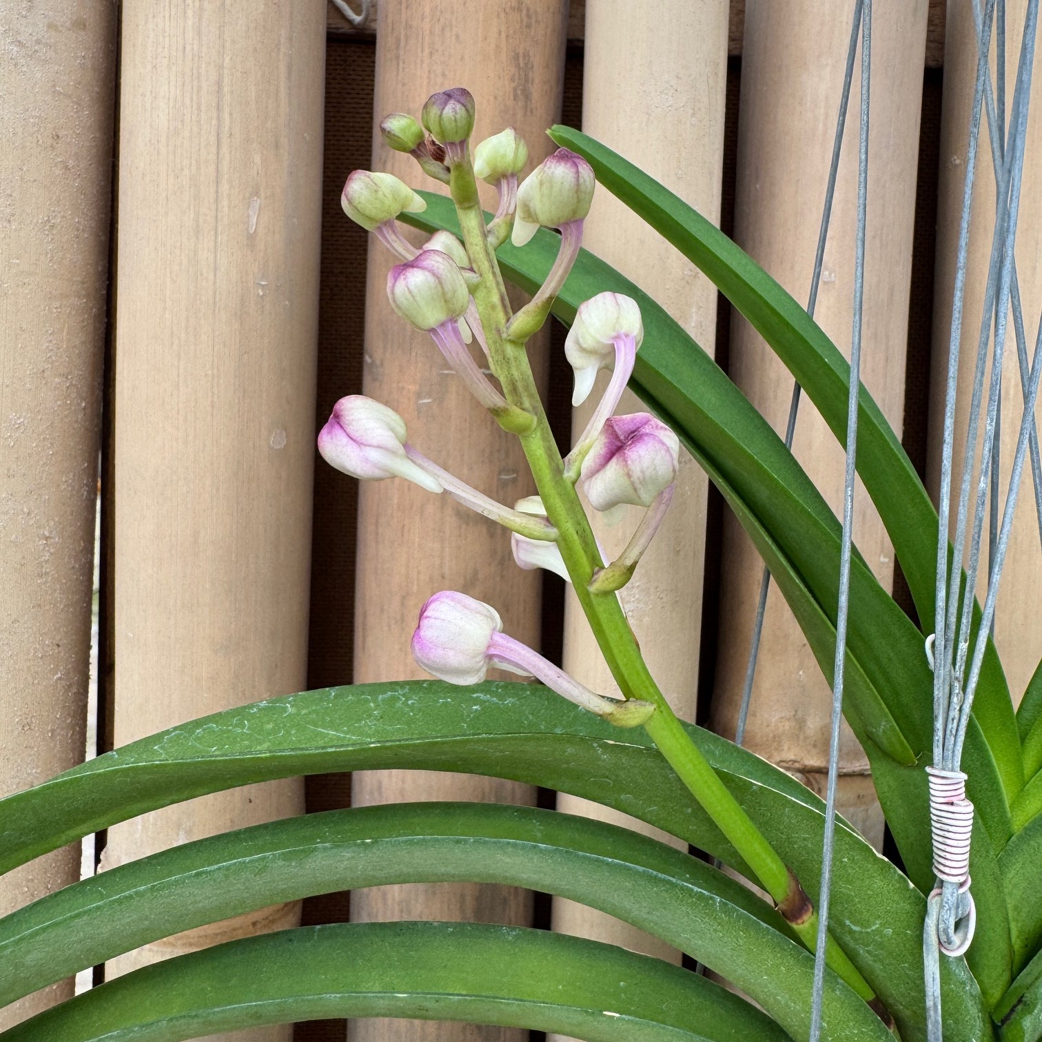 Vandachostylis Jularax--This astonishing Vanda hybrid seedling is not currently producing buds/blooms but will be eager to unveil its beautiful flowers in a blend of violet blue during next year's blooming season. These orchid plants are healthy and vigorously growing eager to blossom! Vanda Jularax Features: